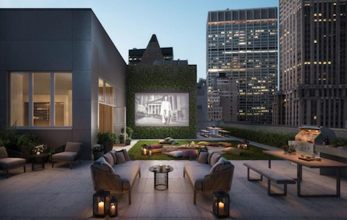 Residents at 20 Broad Street are welcomed into the building by a massive lobby with bronze finishing and a doorman along with other amenities such as private storage, laundry room on-site, library room for some peace and quiet, a state-of-the-art fitness center, cinema room, children’s playroom, lounge room, and a rooftop terrace with seating and a panoramic view of the city.